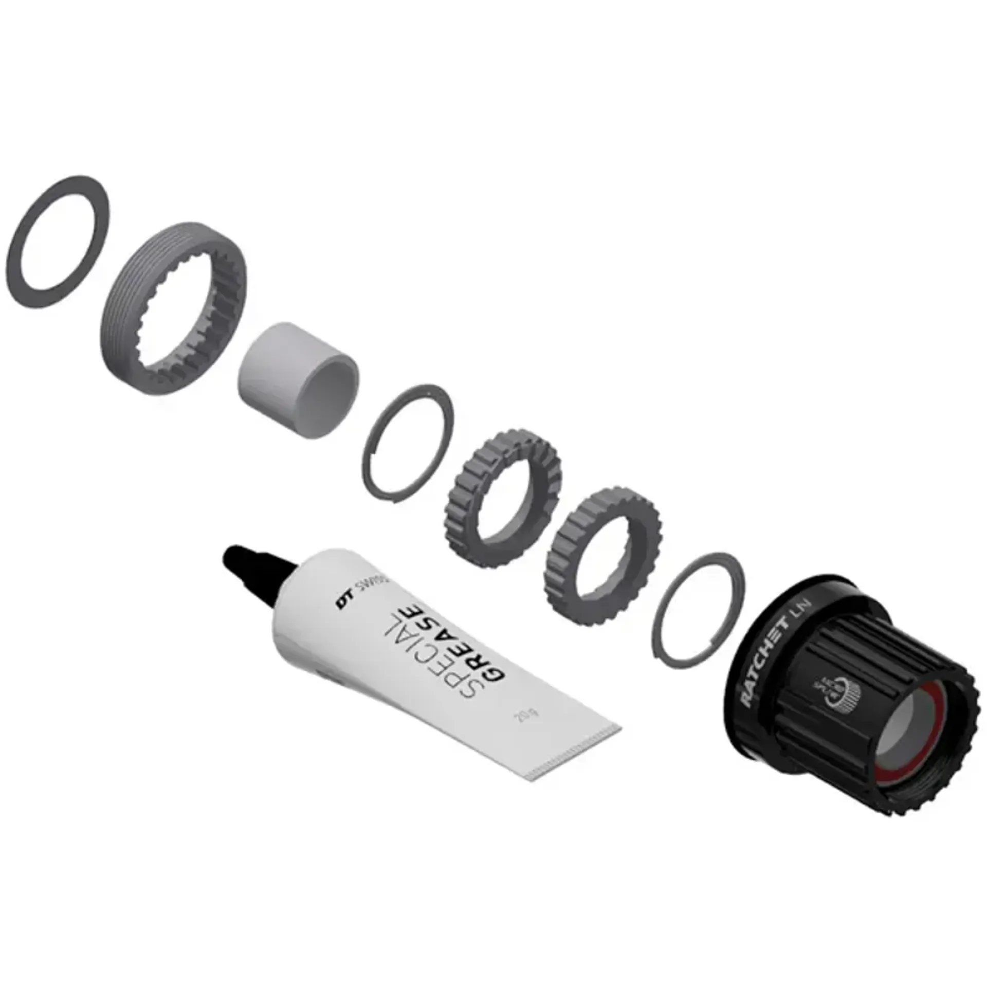 The Ratchet LN upgrade kit enables the conversion of DT Swiss 3-pawl hubs to the renowned DT ratchet freehub system.